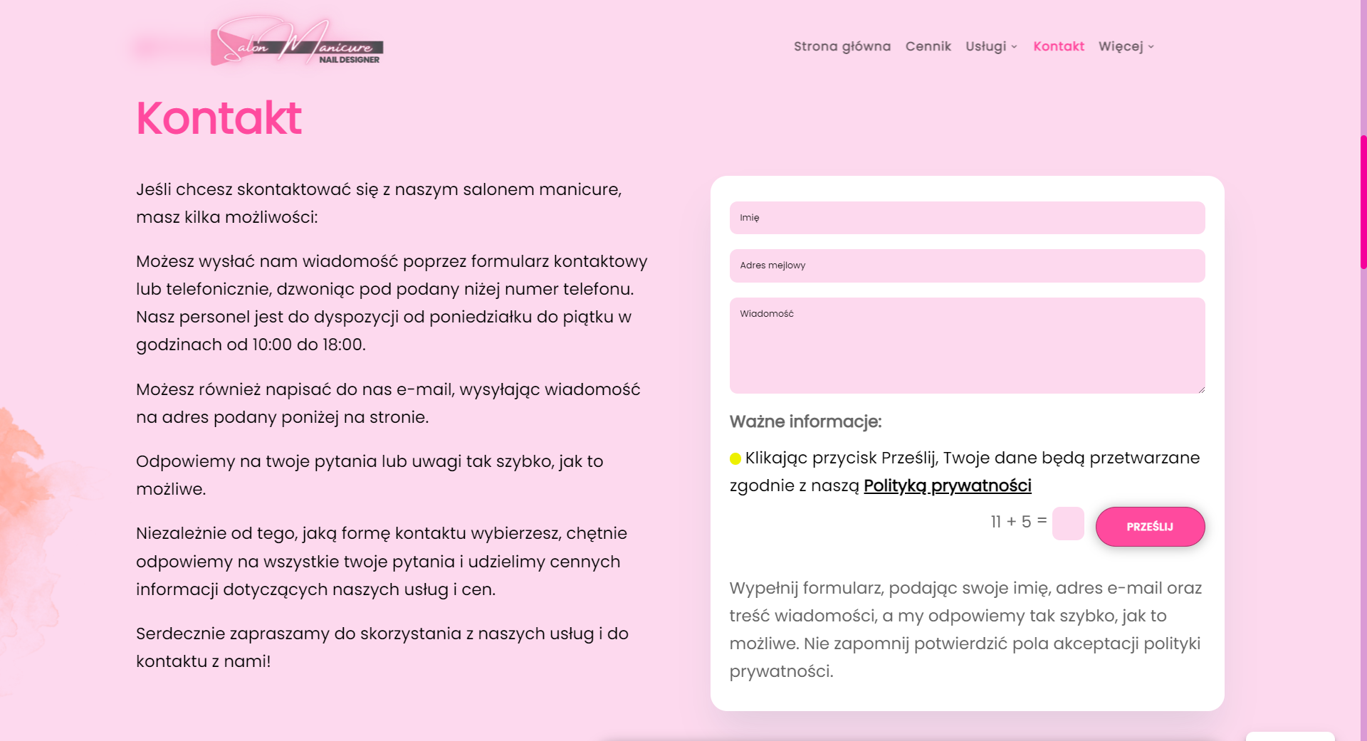 Dla wygody Twoich klientów został ustawiony formularz kontaktowy. Dla wielu klientów jest to najszybsza forma kontaktu.